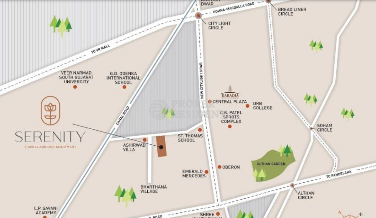 Kakadia Serenity Vesu Surat Surat is a RERA registered project. It is located near ashirwad villa. Promoter of this project is Kakadiya Builders. RERA number of this luxurious project is PR/GJ/SURAT/SURAT CITY/SUDA/RAA08588/080621. As per RERA registration this project started on date 01-04-2021 and planned to end on or before date 31-03-2026.