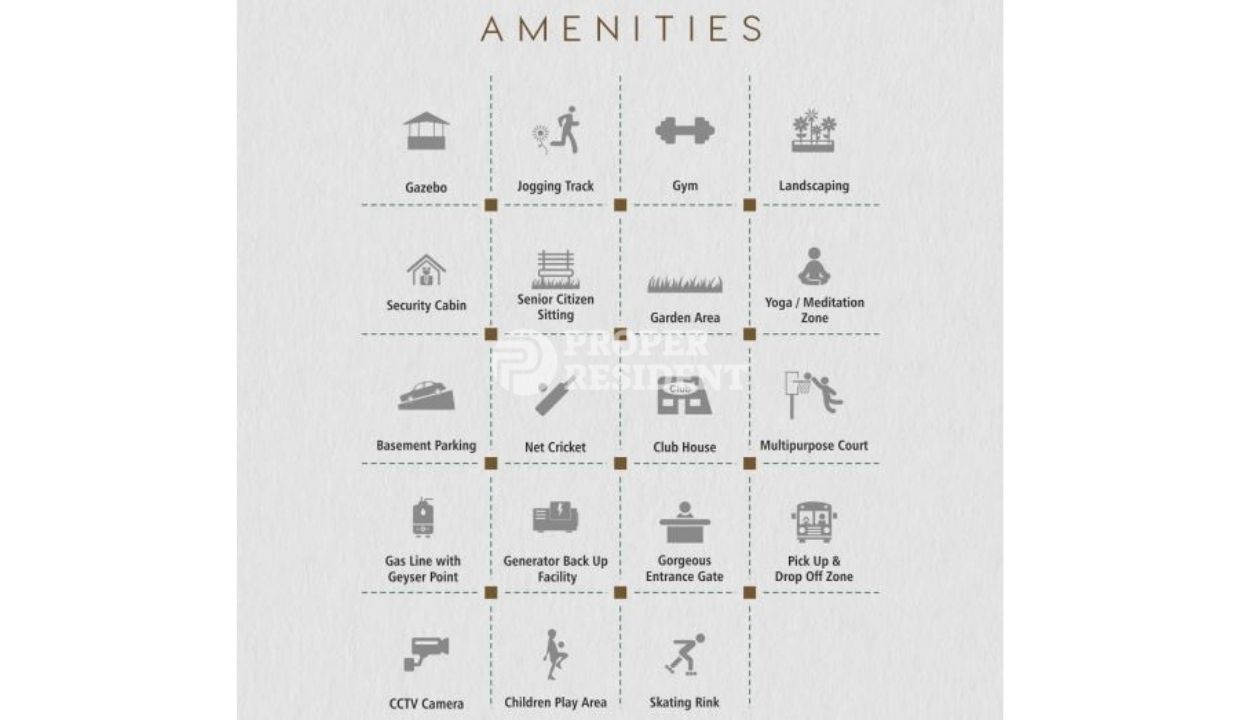 Additional amenities like gazebo, jogging track, gym, landscaping, yoga/meditation area, net cricket, club house, multipurpose court, generator backup, pick up and drop zone, and skating ring also offered here.