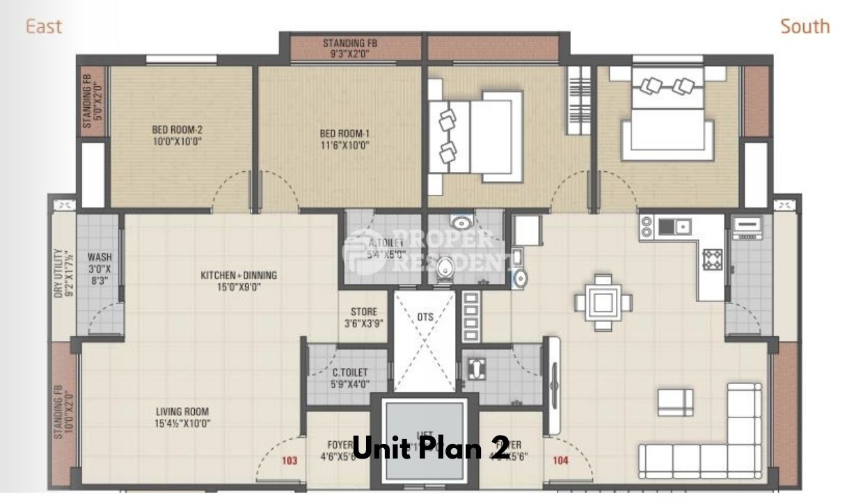 2 BHK – 592.33 sq ft (+ 23 sq ft)