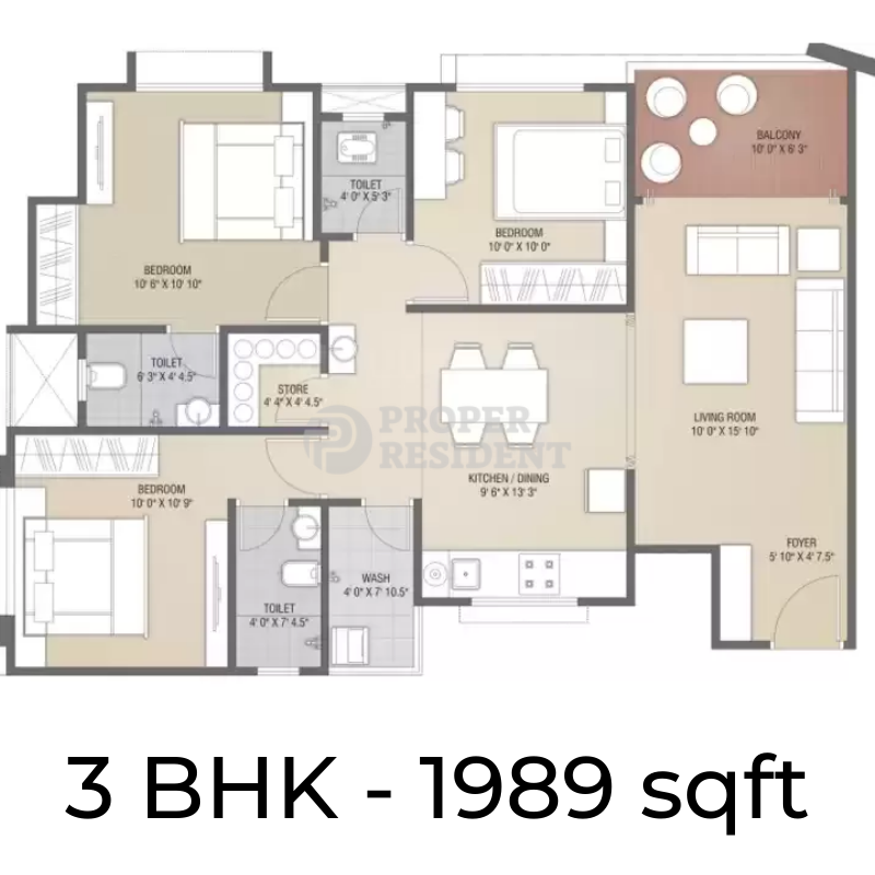 | 3 BHK | 1989 sq.ft | 49.72 L |