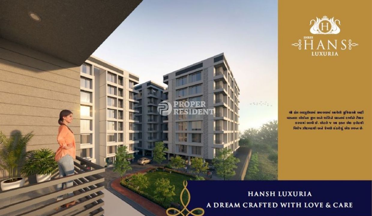 Shree Hans Luxuria Utran is a RERA registered project. It is located opposite Sentosa Heights. Developer of this project is Nilkanth Varni Developers. RERA number of this luxurious project is PR/GJ/SURAT/SURAT CITY/SUDA/RAA05649/050719. As per RERA registration this project started on date 28-03-2019 and planned to end on or before date 27-09-2024.