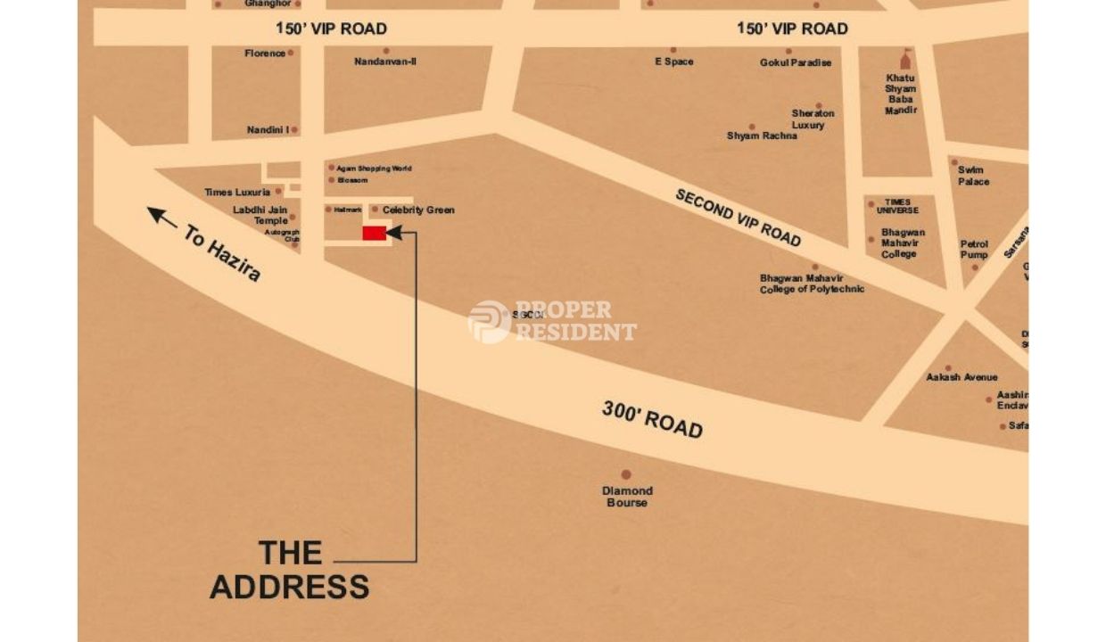 The Address Vesu Surat is a RERA registered project. It is located beside celebrity green. Promoter of this project is Maxiple Buildcon LLP. Developed by Vacanza Developers. RERA number of this project is PR/GJ/SURAT/SURAT CITY/SUDA/RAA07408/A1R/060421. As per RERA registration this project started on date 21-03-2020 and planned to end on or before date 31-12-2025.